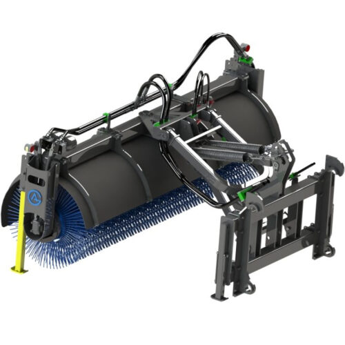 Borsten kan vinklas upp till 30 grader. Denna sopvals har en arbetsbredd på 3 meter när borsten står rakt, vilket ger en arbetsbredd på 2,6 meter när den är fullt vinklad. Bärmaskinens hjulbredd bör vara något mindre än arbetsbredden när sopvalsen är vinklad så som den är tänkt att användas.