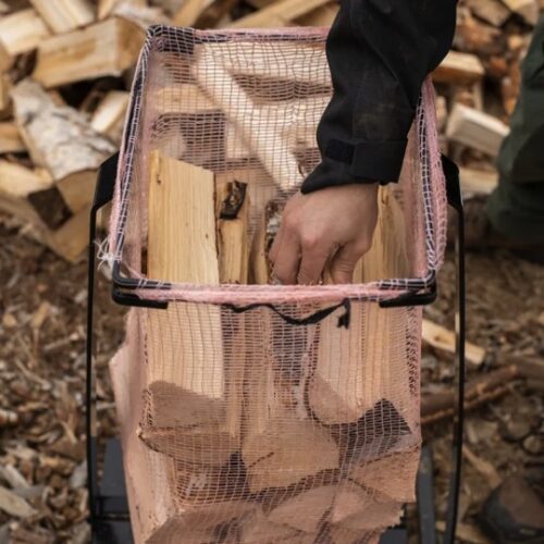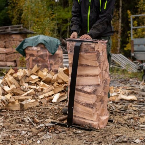 Spara tid och rygg genom att använda ett ergonomiskt säckstativ där du enkelt fyller säcken med ved. Stabilt och robust vedsäckstativ som är justerbar för både 60- och 80-liters vedsäckar. Levereras komplett med ställning och upphängningsbyglar. Småsäcken spänns upp mellan de två armarna före man fyller den med ved. Den fyllda säcken glider enkelt av stativet för att snöras. Svartlackerad stål.